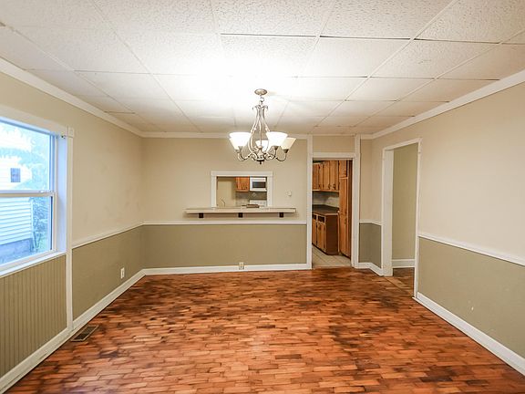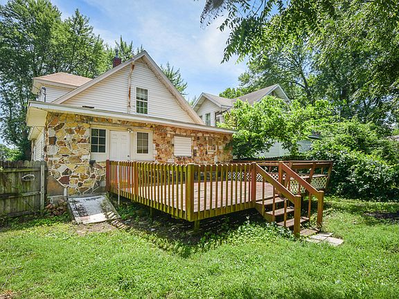 Large stone home on corner, fenced lot. Large 2 car detached garage/workshop. Home has been updated. It has hardwood floors, 2 living areas and a large deck.