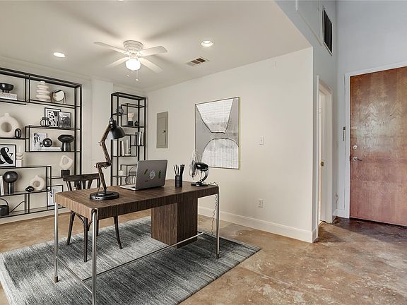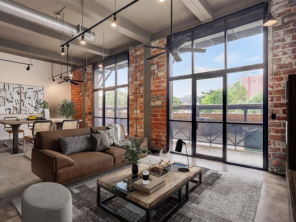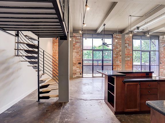 Experience authentic industrial loft living in the heart of Downtown Houston. Located just north of Buffalo Bayou, this striking 1-bedroom, 2-bath unit with a bonus flex room features soaring concrete ceilings, exposed beams, and an expansive 35-foot living and dining area. A wall of oversized windows fills the space with natural light, while polished concrete floors add to the modern, urban feel. The open-concept kitchen flows seamlessly into the living area ideal for entertaining. Rent includes water, sewer, trash, and one parking space. Just a 2-minute walk to UHD and all that Downtown has to offer!