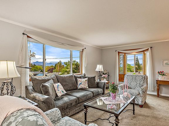 One of a kind beautiful two story cedar home; main level features 3 bedrooms. and 2 baths and walk out lower level. Nestled on a low maintenance lot with mature flowering trees, shrubs and bulbs; Flowers from early Spring till late fall., The cook will love the kitchen with granite, SS appliances, farmhouse sink, abundant drawers and cupboards, built in china cabinet, walk in pantry and tile floor. Dining area with window seat. Spacious living room has wood burning FP with raised hearth. Windows to the south allow magnificent views of surrounding mountains and abundant sunshine in winter. Ensuite bedroom with sliders to the deck and cultured granite walk-in shower. Lower level has huge family room with cedar wainscoting. Guest room/den with attached full bath. Separate entrance has great potential for ADU. Laundry room with cupboards and sink. Oversized 2 car garage with heating vents and workbench. Gorgeous mature landscaping. Convenient location; close to schools and shopping.