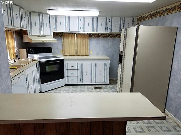 1981 Double wide manufactured home on a nice size lot. Covered front porch, 1 lg shed & 1 small shed, cyclone fence front and back yard w/underground sprinklers. 3 bedrooms 1.5 baths, spacious living room w/dining. Kitchen comes with fridge, garbage disposal, range and dishwasher.