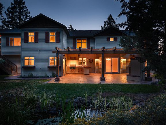 The private, park-like setting of this nearly 3/4 acre corner lot situated on a cul-de-sac with mountain views & nearby trail access is perfect for those seeking a quiet retreat. Backyard borders community park & features new patio, outdoor kitchen w/ infrared grill, fireplace, water feature & play structure, making it ideal for neighborhood gatherings. Spacious kitchen has pass-through window to outdoor kitchen, large island w/ seating and hardwood flooring. Formal dining room opens to backyard creating a nice indoor/outdoor flow for entertaining. All 4 bedrooms located on second floor. Light & bright master features mountain views; bathroom has steam shower and separate soaking tub. Large flex space over the 3 car garage has vaulted ceiling, fireplace, wet bar & opens to a beautiful covered deck surrounded by mature trees. Easy access to Deschutes River Trail from your front door! Restaurants, shopping & schools within ~3 miles. Truly a remarkable property!