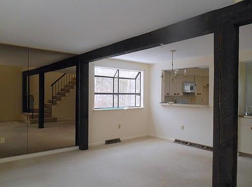Located in desirable Pinebrook Village, this sunny end unit townhouse has a lovely view of trees and a brook. Three floors of open living offer a large kitchen with attached balcony. The dining room features a wet bar and opens to a spacious living room leading to a private deck. Upstairs, the oversized master bedroom has a unique loft and walk-in closet with access to the attic. A second spacious bedroom and a full bath complete the second floor. The basement has a large finished family room with a bar and built-in cabinets. This level also includes laundry room and storage under the stairs. Unit also includes deeded parking and tons of additional spaces for guests. Convenient to public transportation with bus route right outside complex to the red line and commuter rail stops.Derby Streets Shops are only 2 miles away. Make an appointment to see this wonderful home!