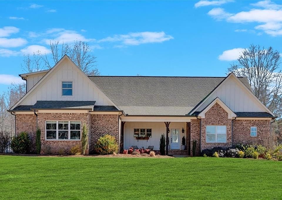 Welcome to 915 Pool Rd, Hiram! This stunning four-sided brick ranch home on a full basement was custom-built in 2018, and offers the perfect blend of luxury and comfort. Nestled on two acres of serene landscape, the home boasts high-end finishes throughout, including hardwood floors, elegant lighting, custom tile, quartz counters, and many other sophisticated accents. Enter from the inviting front porch into a gorgeous, completely open-concept living area. The chef's kitchen features high-end stainless appliances, granite counters, a stylish tile backsplash and a massive island - perfect for gathering and entertaining. The living area boasts a cozy gas log fireplace with a brick front and shiplap accents. Large windows across the back wall flood the space with natural light and offer views of the wraparound deck and acreage. Just off the living area, you'll find two large secondary bedrooms, once with a custom closet insert, and the other with vaulted ceilings. These bedrooms share an oversized bathroom, complete with a 12-foot double vanity and a spacious shower. Off the kitchen is the spacious primary suite - your personal retreat. The spa-like bathroom features a newly tiled dual head shower, a free standing soaking tub with new tile surround, and a large double vanity. Finishing off the primary suite is a large, walk-in closet. Step down the hallway off the master suite to find the hallway office area with custom cabinetry, the newly remodeled laundry area, a half bath, and stairs leading up to the bonus area over the garage. This bonus space is perfect for a teen suite or guests as it includes a large bedroom and a full bath with new tile. The finished terrace level offers the perfect blend of comfort and versatility. This space features a full bath with a newly tiled shower and quartz top vanity. The large bedroom/flex room comes with a spacious walk-in closet. The open living area is ideal for a game room, living/dining room or entertainment space and is already stubbed for a kitchenette. Plus, there is plenty of unfinished space that is centrally heated and cooled, and stubbed for additional bathrooms; allowing for customization to fit your needs. With an abundance of natural light flowing through the glass doors and windows, this level would be perfect for an in-law suite. This amazing property sits on two full usable acres. 1.3 acres of the property is fully fenced. Secluded, yet convenient Hiram location is perfect for those looking to escape the hustle and bustle while still being close to shopping, schools, and restaurants.