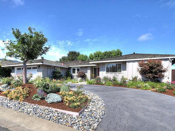 In the enclave of the Highlands, lovely 1-level home enjoys beautiful views of the Valley, western hillside, & sunsets. Lovely & private grounds include 2 patios for indoor-outdoor entertaining. Large kitchen has ample cabinetry incl a center island w/ granite slab counter, stainless Sub-Zero refrigerator, Bosch dishwasher, & 4-burner gas range with stainless hood. Separate family room off of the kitchen has a fireplace with gas log, 2 ceiling fans, & a sliding door to the rear grounds. Formal living-dining room with warm fireplace & large windows capturing views. Spacious primary bedroom suite has lovely views, & a walk-in closet with organizer. The en suite bath has a large shower with dual showerheads, & a separate jetted tub. Laundry room with sink, storage, half bath, & door to outside. Other features: central air conditioning, refinished hardwood (partial), newly painted interior/exterior. Fantastic location near: Rancho San Antonio Preserve, Woodland Library, Trader Joes.