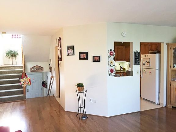 Meticulously kept multi-level townhome. The "Dartmouth", with 1,802 sf is situated in the beautiful Ridgefield Condominiums featuring a fully applianced kitchen with granite countertops and newer appliances. The living and dining room feature gleaming hardwood floors with large windows and slider to beautiful deck overlooking quiet backyard and woods. The two bedrooms have wall to wall carpet with the large master bedroom offering a full bath with tile floor. The family room features a built-in gas fireplace with a remote control along with a convenient half bath and a slider to a private patio. Many many upgrades including newer windows, sliders, heating and air conditioning, granite countertops, stove and ref., gas insert in fireplace, front storm door, 1/2 bath off family room, irrigation system and extra insulation in attic. Just move in and enjoy your new home or walk to the clubhouse to use the exercise room or take a swim in the beautiful outdoor pool. Tennis anyone ?