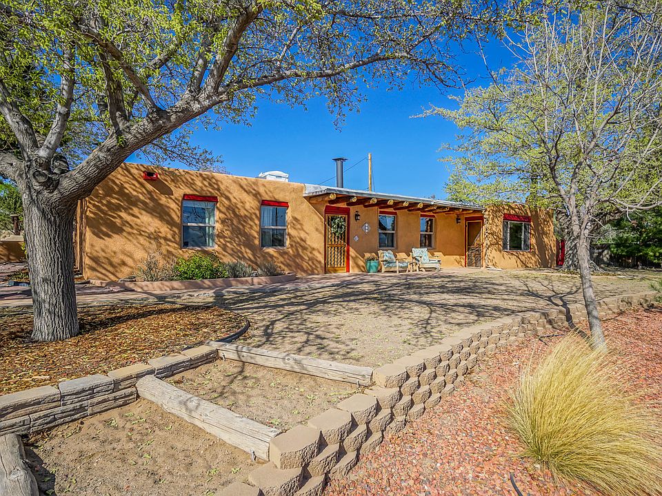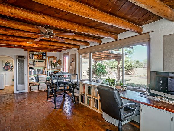Grand Open House Sunday 2-4! Historic Los Altos Neighborhood- a pocket community of 36 Leon Watson adobe pueblo revival homes that sit on the bluff overlooking the City. Come for the Views and stay for the Twinkling City Lights! Charm abounds! The photos are great, but come see it and enjoy this home that says ''I live in New Mexico!'' Brick & concrete floors, Vigas, 3 Kiva Fireplaces, bancos, built-ins, and greywater recovery system. Quick to downtown, Old Town, Bio Park, and the Rio Grande. Features a greatroom and a bonus room for hobbies or office, 3 bedrooms, and a lovely covered portal out back. The yard features raised garden beds, native grass and wildflowers. Don't miss it! Call today.