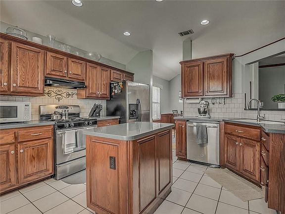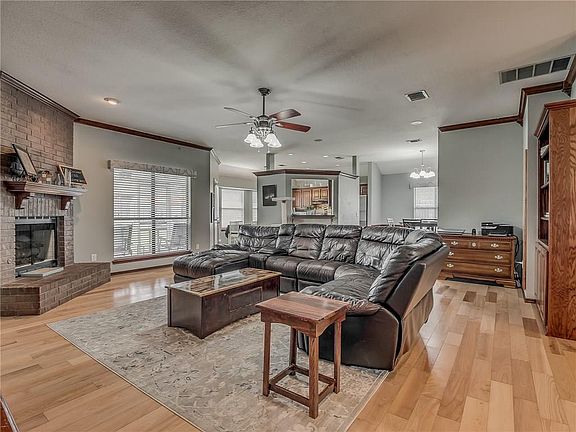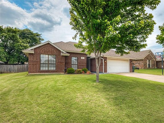 Beautiful home ready to move in! This home on a cul-de-sac street in Carl Albert school district is just what you're looking for. Walk-in on your covered patio to the open living room with a beautiful gas log fireplace. The kitchen is open with ample cabinets for all of your cooking needs and a gas stove. Open the closets, because this home has lots of storage throughout! The master suite with room to roam features a private bath with his & her sinks and closets, a jacuzzi tub and stand up shower! Both extra bedrooms are large and have custom-built beds that are open to stay! Walkout onto your screened in back patio and enjoy the outdoors protected from the Oklahoma bugs. Nice space in the back yard with storage shed and custom-built sitting area. Storm shelter in the garage for your protection. Call today for your private showing!