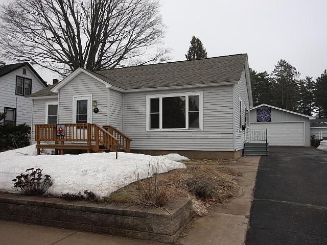 A cozy and very well-maintained home in a quiet neighborhood is what you will find in this 2 bedroom, 1+ bath home on Randall Avenue in Rhinelander. The home's main level provides a nice galley kitchen w/ backyard views, a living room & dining area w/ attractive hardwood flooring & tinted picture window, a nicely updated full bath, and two bedrooms. The basement features laundry & mechanical space, a 2nd toilet w/ potential for another full bath, and a partially finished space that could easily be completed to make a family room or rec room. The exterior enjoys newer roof shingles (2018), double-pane windows, a paved drive, a 24'x24' detached garage, and a truly secluded backyard with a 6-foot privacy fence, fire pit space and a 2-tier sundeck great for relaxing & BBQ-ing with family and friends. Located just a short walk from the historical Pioneer Park complex & downtown Rhinelander, the home offers convenient access to both recreation and amenities.