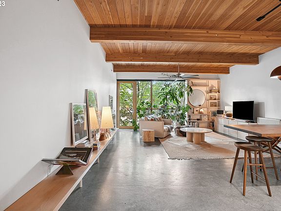 Iconic Holst Architecture Lofts, winner of AIA Best Design Award, featured in NY Times & Dwell Magazine. This stunning Belmont District loft features modern polished concrete floors, high 11-foot ceilings with exposed timber beams & an open floor plan. Updated kitchen cabinetry, brand new extra tall Liebherr refrigerator, stainless countertops & backsplash along with a beautiful custom 10-foot solid walnut island top. Ample & spacious closets with organizers for storage, large bathroom with heated towel rack, spacious laundry room with W/D. Large windows with custom blackout blinds for maximum privacy. All appliances included, solid small HOA, deeded parking, charming Juliet balcony overlooking Belmont Street. Walk score 97, Bike Score 100. Welcome to your dream loft in the heart of vibrant Portland!
