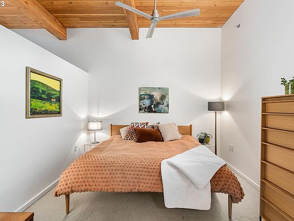 Natural Light, Location, and a View. Everything you Want: Nothing is missing in this award winning very rare 2 BD/2BA loft by Holst Architectural featured in Dwell magazine. Ask for copy of the article. Enjoy the sun filled space created by the dramatic 11-foot-high beamed ceilings, floor-to-ceiling windows, and bright maple floors. A double sound barrier between units provide privacy. A view of a view of Sunnyside Park and SW sunsets are enjoyed through the large window or from the outdoor balcony. The Belmont and the nearby Hawthorne neighborhoods are great communities with 2 groceries, a wide variety of shops, restaurants and entertainment venues. Deeded covered parking. The southern exposure provides early morning and late afternoon light without overheating your space. Start your morning and end your day on your quiet sunlit balcony. New AC unit will keep you cool during the warmer days. Heat, gas, water, broadband included in HOA fee.