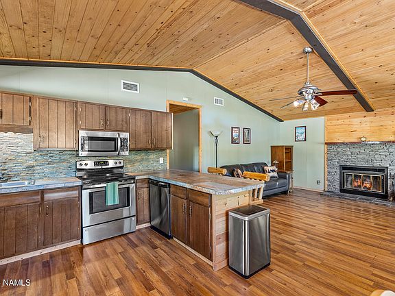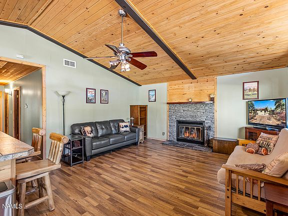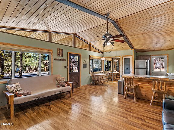 Come surround yourself in this lovely cabin in the Munds Park area of northern Arizona. This property has a beautiful forest and serene atmosphere, it's a perfect getaway. Property offers 3 bedrooms, 1.5 bathrooms with a wood burning fireplace with plenty of space for family and friends to enjoy the indoors and outdoor space. This home displays a cozy T&G ceiling throughout and is fully furnished. Front patio is covered and backyard has an irrigation system that is fully fenced. Located at the end of a cul da sac but also a short distance to miles of forest trails for hiking and off roading.
