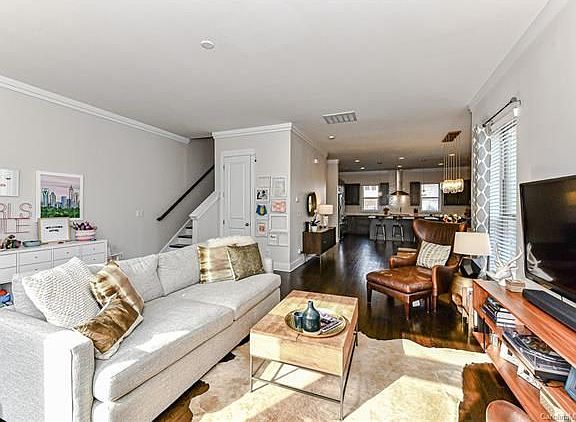 You must see this wonderful light-filled end unit with the space of a single family home but the ease townhouse in HOT NODA! Urban living & beautiful functionality. Open living and dining spaces w/ lovely brushed gold chandelier, wood floors, 10' ceilings & windows all around. Cooks kitchen w/ grey cabinets, white granite, white subway tile, gas cooktop/ss hood & ss Electrolux appliances. Light streams from windows & the double glass doors to large deck w/ sitting area & grill-even a terrace garden. Master bedroom suite w/ balcony, beautifully appointed bathroom w/ soaking tub, walk-in shower w/ frameless surround, double vanity & large walk-in closet w/ custom shelving. Two additional beds up, laundry room w/ custom storage & more. Lower level w/ separate entrance, full bath & 4th bedroom/office w/ reclaimed wood shiplap wall & closet w/ custom built barn door-Versatility at its best. Large 2 car garage. Walk to Neighborhood Park, light rail, Bold Missy Brewery & the best of NODA.