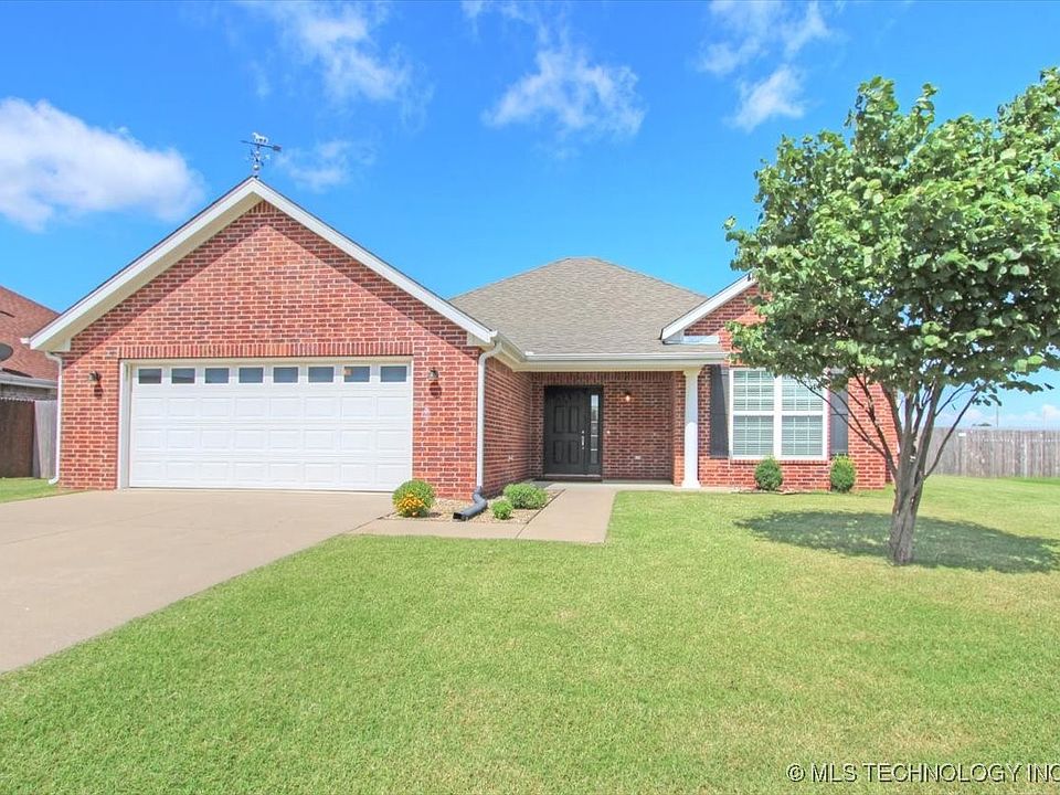 Beautifully maintained home in Eastview Addition in Bartlesville! Updates include a new roof in 2021 (with extra shingles,) new hot water tank, dishwasher and refrigerator in 2023 and a new fence in 2024. The gorgeous wood-look laminate flooring (extra flooring stays) is around 5 years old. The over-sized primary bedroom has a spacious walk-in closet and en-suite bathroom with double sinks, ample lighting and beautiful tile floors. The kitchen has bar-top seating plus a formal dining area, 2 pantries and the refrigerator stays! The kitchen opens to a very comfortable living area with a tray ceiling and dedicated office space. Ample storage throughout! Lovely covered patio overlooks the backyard with trees. Don't miss it!