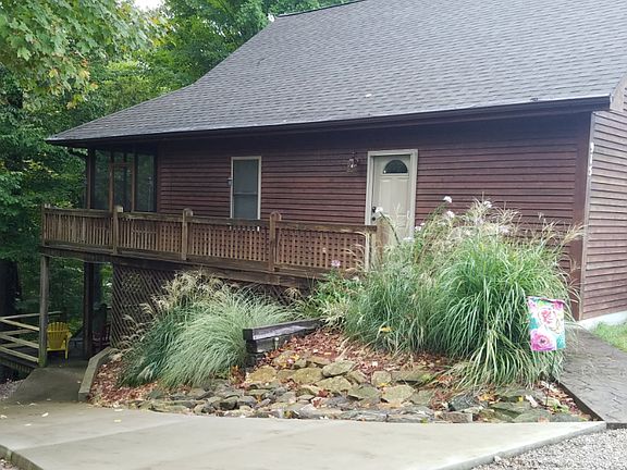 Move-in ready with furnishings, linens, appliances, kitchenware, and grill! Beautiful view from the screened porch (918 sq. ft). Open lower deck with stairs to pathway leading to water access with dock (918 sq. ft.)