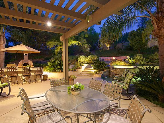 Seller will entertain offers between $1,699,000 - $1,799,000. Award-winning schools, 6 miles to the sea, NO HOA or mello roos/CCRs & privately sited, this home offers grand styling & lush, tropical landscaping. Amenities include a downstairs bedroom suite, luxurious master retreat with vast, walk-in closet & a smashing kitchen open to the breakfast area & family room. On a generous .56-acre lot, the stunning grotto pool & spa with waterfalls, a fire pit, outdoor kitchen with pizza oven & raised bed gardens with fountains + a community walking trail are highly prized. 5 bedrooms & 4.5 bathrooms with 1 bedroom suite downstairs on .56 acre. A dedicated office downstairs has French doors opening to compelling gardens & could convert to a 6th bedroom. The primary retreat is luxurious and private with a warming fireplace and sitting area. The primary bath is breathtaking with a large shower, separate spa-tub, lovely maple cabinetry with sit-down vanity and a gargantuan walk-in closet. Of the 3 additional upstairs bedrooms, 2 share a Jack & Jill bath and 1 is en-suite. These bedrooms open to a 2nd family room with built-in, 2-person desk & ample room for play-space & cozy furniture. A warming fireplace & backyard views grace the formal living room. The dining room has a coffered ceiling with French doors opening to a lush lawn & the pool area. The home enjoys great-room styling with a generous family room, dining area & striking, center-aisle kitchen open to all. Built-in wine storage in the family room is pre-plumbed for a wet bar, a fireplace is central to the space, French doors open to a covered patio & outdoor kitchen & beautiful, hand-carved cabinetry was recently added. There is a fabulous, chef-quality kitchen with spectacular pool-side views, granite counters, deep, triple-compartment sink, an abundance of rich maple cabinetry, upgraded stainless-steel appliances & generous center island with plenty of room for seating. This home is sited in a highly-prized neighborhood and is as compelling as it is rare.