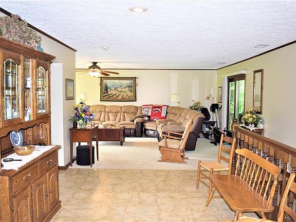 On A Grassy Knoll set back on 14 breathtaking acres sits this 4BR/3.5BA home that seems as one with it's natural surroundings. Featuring open concept main floor w/cupboard clad kitchen, all appliances, center island & pantry, large living & dining rooms perfect for family gatherings, 2 master suites w/private baths, walk-out basement w/cozy family room, office/bonus room and 2 bedrooms. Then enjoy the great outdoors w/multiple porches, pond, creek, woods and pasture. Pole barn included. Specially priced for your family!!