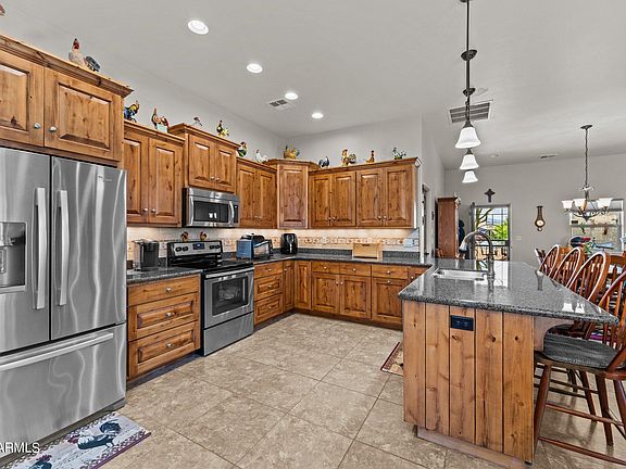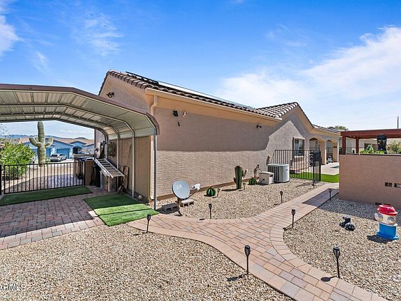 What a find!!! Nestled in the heart of Wickenburg, Arizona, this exquisite property offers an unparalleled blend of beauty, comfort, and tranquility. Boasting a meticulous design and an array of upscale features, this residence showcases desert living at its finest. As you step inside, you are greeted by the seamless elegance of tile floors. The kitchen is a chef's dream, adorned with stunning granite countertops, with seating, custom cabinets and upgraded appliances. Primary bedroom offers a large, walk-in closet, separate tile shower & tub. Enjoy The private pool, where you can bask in the warm Arizona sun Surrounded by lush landscaping and bordered by a spacious patio, the pool area offers a serene oasis for relaxation and entertainment. In addition to the attached garage, this home also features additional covered parking, providing plenty of space for your vehicles and outdoor gear. Whether you have a collection of cars or need storage for recreational equipment, there's ample room to accommodate your needs. Meticulously maintained inside and out, this property reflects pride of ownership at every turn. From the manicured landscaping to the carefully curated interior, every detail has been thoughtfully considered to create a space that is both inviting and refined. An amazing home! Come see it today!