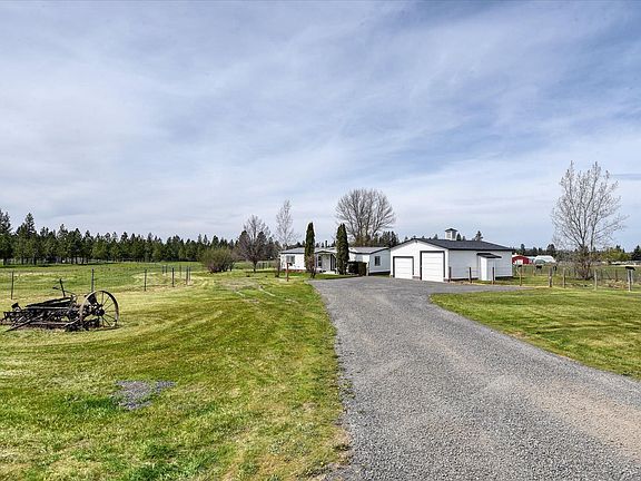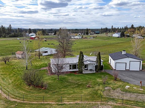 Welcome to Paradise! The setting for this manufactured home is ideal, and the view is expansive from every vantage point. Seller has taken care of important infrastructure items newer metal roof, all new windows, new flooring, and new paint inside and out. When you enter the home you will find vaulted ceilings in the great room and a cozy wood burning stove for chilly nights. The kitchen is large with plenty of cabinets and counter space as well as an informal eating area. Plus, it overlooks the back section of the 7 acres, and the pastoral setting is charming to the eye. The primary bedroom is good size and has a 3/4 bath and is on the opposite side of the home from the other 2 bedrooms. This is an inviting home with natural light streaming throughout every room! AND it has an INSULATED, HEATED SHOP with lots of room for an RV or a BOAT! All appliances included and washer and dryer stay. Close to all outdoor activities & just minutes from downtown Spokane!