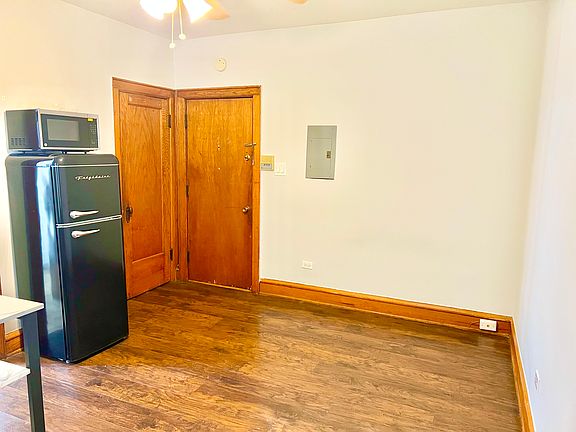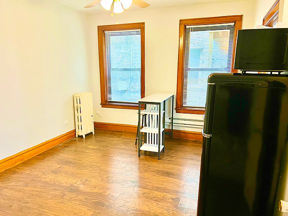 This Studio, 1 Bath apartment on the first floor is Bright and Sunny with Hardwood Floors throughout, windows face west. The unit features a Ceiling Fan, High Ceilings, 2 Big Windows, a walk in closet, a Small Kitchen with cook top, microwave and full refrigerator (not pictured, but will be purchased for the unit). It also has an updated Bathroom with a vanity with storage, a Window, shower, and medicine cabinet mirror with lights for doing makeup/getting ready as well as defogger. Heat, Gas, Water, Sewer, Trash, Maintenance, Landscaping and Snow Removal is included in Rent. Cats OK, 1 Max. $250 Pet Fee. $400.00 move in fee. $60 application fee. Management and Maintenance on site. Shared Large Yard in Back. Coin Laundry in building on the first floor, no going outside. $1.00 to wash and $1.00 to dry, you can buy coins at the office next door. Sheridan Red Line Stop, Whole Foods, Walgreens, Planet Fitness, FFC, Chase, Starbucks, Byline Bank, Orange Theory, Petsmart, Wrigley Field, the Lakefront path and many bars, restaurants and shops are all a few blocks away. The 151 Bus is across the street. PLEASE TEXT NUMBER PROVIDED OR MESSAGE THROUGH WEBSITE, NO PHONE CALLS, PLEASE. Katherine Mathews Renaissance Properties LLC 3122 N. California, 1st Floor Chicago, IL 60618 1 person per Studio. Owner pays for Heat, Gas, Water, Sewer, Trash, Landscaping, Snow removal and Maintenance. Management and Maintenance on site. Renter is in charge of electricity, cable and internet. Cats OK, 1 Max. $250 Pet Fee. $400.00 move in fee. $60 application fee. Coin Laundry in building on the first floor, just around the hall from the apartment. $1.00 to wash and $1.00 to dry. You can buy coins at the office next door. Application fee and move in fee are due at the time of application. If for some reason you are not approved, we would return the move in fee to you. We would only keep the $60.00 application fee. First month rent is due at lease signing.