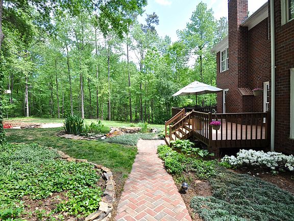 Don't miss this gorgeous full brick home on almost an acre of beautiful wooded land! Extremely private backyard w/koi pond & waterfall feature, large fire pit area, & plenty of green space to run & play. Spacious Kit & Eat-in Breakfast feature granite, tiled backsplash, SS Appls & 42" white cabs. Large Family Room w/masonry fpl, formals, separate laundry room, dramatic 2-story foyer w/double oak staircase, huge MBR suite & bath, custom closet, architectural roof 2013, oversized side load garage