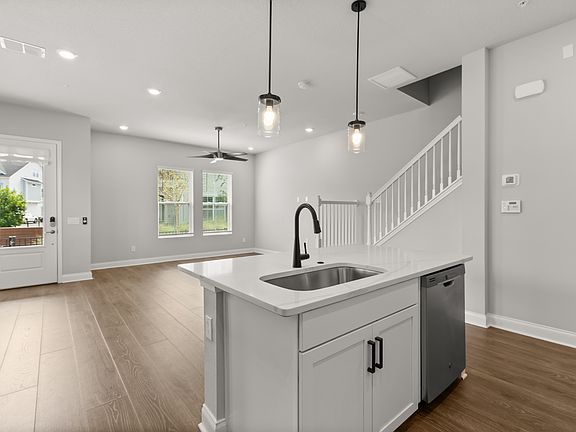 Welcome to this stunning townhome in the desirable, gated Griffin Park Community. This barely lived-in David Weekley home is a must-see, featuring 3 spacious bedrooms, 2 full baths, and 1 half bath, along with a spacious 2-car, rear-entry garage. At less than 2 years old, this home shows like a model, with not a single nail mark on the walls. Situated on a 21-foot homesite, the corner lot property exemplifies the latest in energy-efficient building techniques.