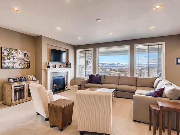 Beautiful Back Country 2 story home w/incredible mountain views welcome you the minute you walk through the front door! Also backing to a large greenbelt area. See mountain views even from the walkout basement! This home offers 9 ft. ceilings on the upper levels and the optional 10 ft. basement ceilings. You'll be impressed by the huge kitchen/breakfast nook area, the large formal dining room and the Great room with gas fireplace. Butler's pantry between the kitchen & dining room. Enjoy the tucked away main floor study/den also offering super views! Granite on kitchen island and countertops, stainless appliances, double convection ovens, 5 burner gas cooktop with overhead exhaust hood. Mudroom between garage access and kitchen. From the Great Room you look West to a large covered custom deck with stone gas fireplace. Upper level has a large master suite 5 piece bath, double walk in closets and 3 add'l bedrooms with 2 full baths. Hunter Douglas blinds + MUCH MORE!