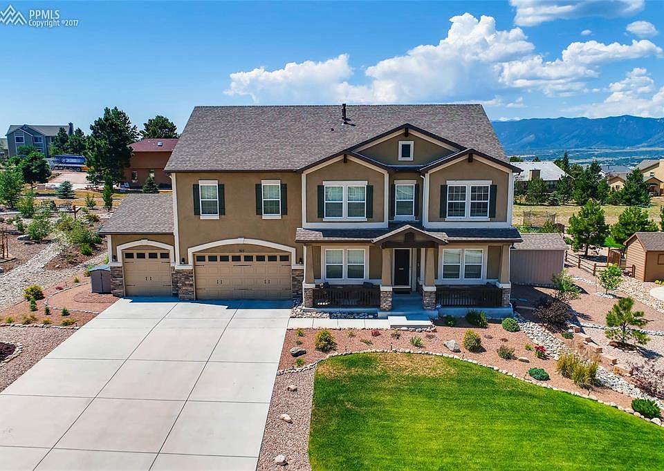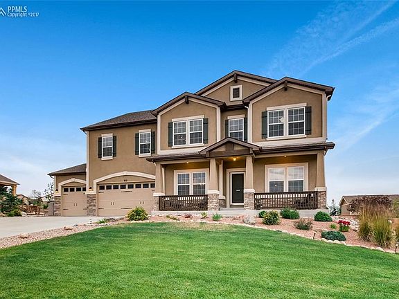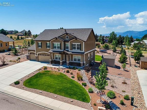 This beautiful 2-story stucco home is situated on just over a 1/2 acre with park like setting in Monument w/ spectacular Pikes Peak views. Great room features 3-sided gas fireplace, separate dining room with marvelous wood floors that flow through to the kitchen. Custom gourmet kitchen that includes granite countertops, stainless steel appliances, double oven, large kitchen pantry, eat in kitchen with breakfast bar, wine fridge and walk-out to back patio. The upstairs features a master retreat with 5pc bath with spacious walk in closet and large spa tub. Additional 3 bedrooms and 2 baths one bedroom has an en-suite bath, and upstairs office nook. Lower level has a large family / game room and an additional bedroom and full bath. Extras include main level laundry facilities, 2 A/Cs, vaulted ceilings, automatic sprinkler system, xeriscaping in the front and back yard with exquisite mountain views that is perfect for entertaining. You won't want to miss this one! Sq Ft Approx.