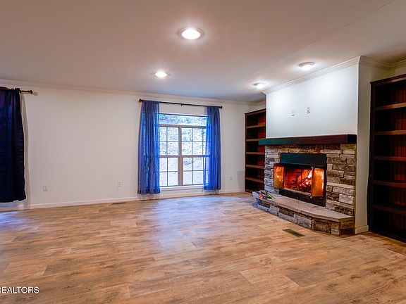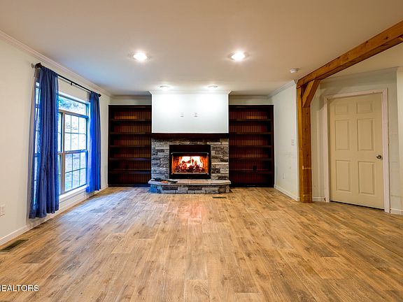 Seller offering a CLOSING CREDIT to buyers with an acceptable offer (call for details)! Escape to the mountains and enjoy true privacy with this one-level home situated on 5.6 secluded acres. Featuring a split bedroom floor plan with a large master suite and 2 more generous sized rooms. Tucked away at the top of the ridge, this nearly 2,000 sq ft retreat offers peace, quiet, and breathtaking surroundings. Inside, you'll find a spacious open floor plan featuring a large kitchen with generous cabinet space, center island, and dining area. Cozy up by the wood-burning fireplace flanked by custom built-in bookcases. The bonus room is currently used as a home office but could easily serve as an additional sleeping area. Whether you're looking for a full-time residence or a peaceful mountain getaway, this private escape is the perfect place to unwind. Two bedroom septic permit.