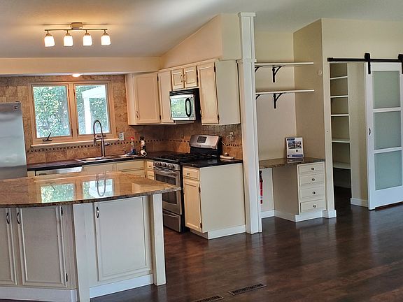 Entertaining dream home. Open Spacious Floorplan with beautiful Granite Counters, large island, huge deck and patio, hot tub, and more. Great location near Stanley lake and trails, close to shopping and schools. 4 large bedrooms and 4 bathrooms with oversized 2 car attached garage. Split level design with vaulted ceilings. Chef and cooking dream home. Huge walk in pantry with full size freezer is just off the gorgeous kitchen. Main level has laminate flooring and looks over great bonus living room with brick fireplace and mantle. Basement is fully finished with 3/4 bath and seperate bedroom and living room for guests or live in relatives. 6 or 12 month lease with month to month options available. Home is available immediately.