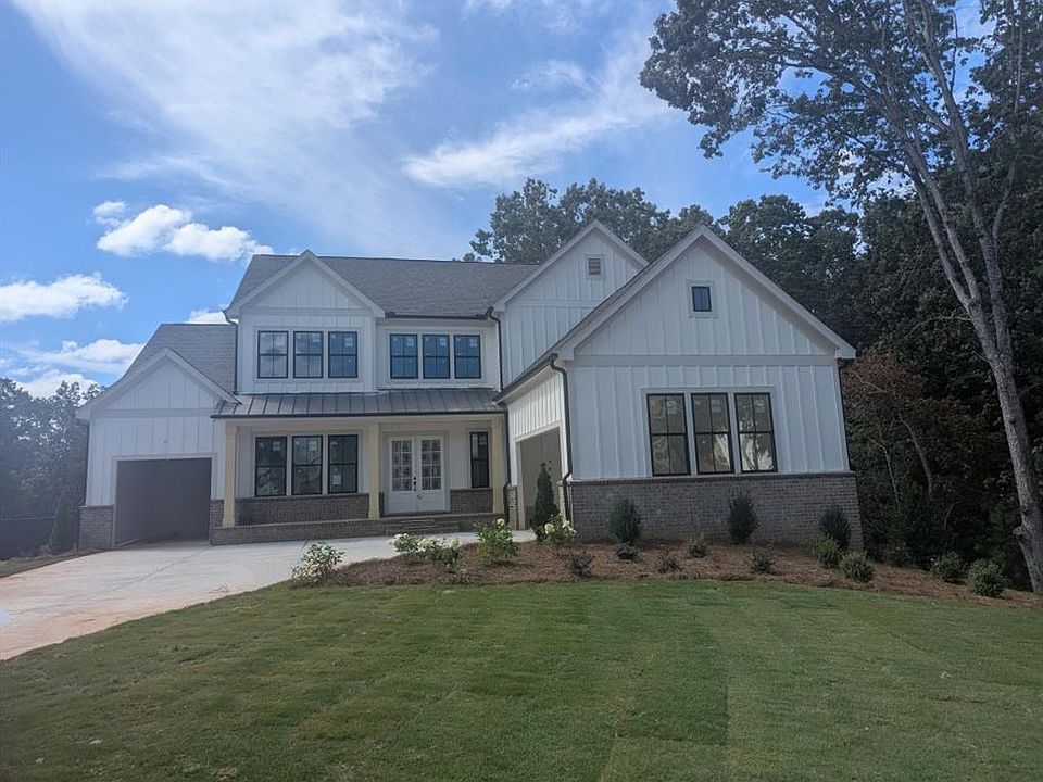 The Chatsworth Plan built by Peachtree Residential. Quick Move-In! Welcome to your dream lake home in an exclusive 15-home community on Lake Lanier. This beautifully designed new construction offers luxury lake living with a deeded covered community dock, easily accessible by golf cart for endless days on the water. From the moment you arrive, you're greeted by a charming rocking chair front porch and elegant double front doors opening to a spacious foyer flanked by the Dining Room. The heart of the home is the expansive family room, featuring a 12-foot sliding glass door that floods the space with natural light and leads to a large covered back porch - perfect for relaxing or entertaining. A cozy fireplace and custom built-ins add warmth, while the open-concept chef's kitchen boasts a 10-foot island, ideal for gatherings and everyday living. Easy access to the uncovered deck perfect for grilling. This home features engineered hardwood floors on the main and upstairs hallway, oak stair treads, cabinets to the ceiling, quartz countertops, KitchenAid appliances, a three-car garage and a thoughtfully designed layout. Upstairs, you'll find three secondary bedrooms, each with their own private. The loft overlooking the foyer has an open railing with metal balusters and a ship lap detail wall. The primary suite is a true retreat with a vaulted ceiling, plenty of windows to look out and enjoy the beautiful backyard and access to the covered porch. The spa-like bathroom has a huge tile to ceiling shower with a tub in the shower and you won't believe all of the vanity space. The large primary walk-in closet connects directly to the laundry room for ultimate convenience. The full unfinished basement offers even more space with multiple large rooms, stubbed bath and patio access, ready to finish to your liking. This area is perfect for entertaining, especially if you add an inground pool in this sunny backyard. Great seasonal view of Lake Lanier. Ask us about our AMAZING end of the year incentive of up to $50,000 Any Way You Want It* on this specific homesite with use of preferred lender and binding contract by 10/31/2025 and close by the end of 2025.