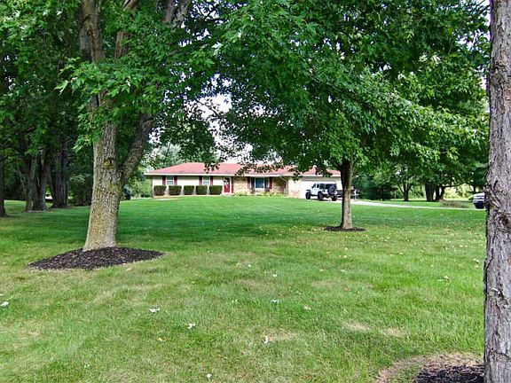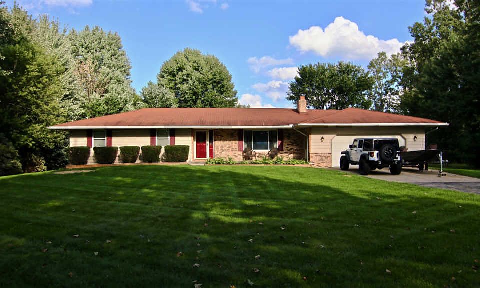 3 bedroom ranch with multiple updates throughout and 5 acres of gorgeous land. 1843 sq. ft. home on 5 acres! Enjoy a 32 x 32 pole barn with cement floor, 14 ft. ceiling and 12 x 12 entry door. Home has spacious living and family rooms, first floor laundry. 1.5 baths, basement, 2 car attached garage with work shop. Wonderful home sits off the road for large gathering both inside and out! All appliances stay.