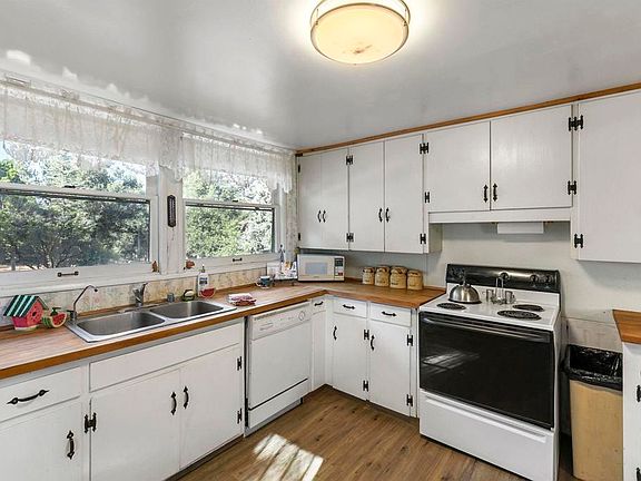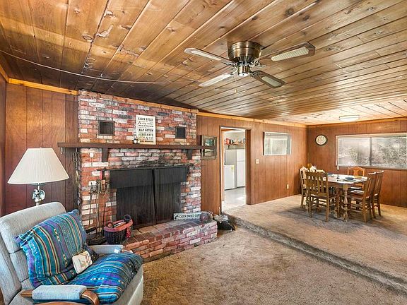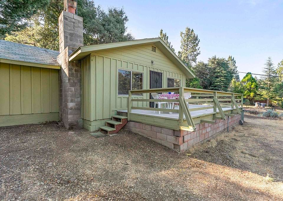*Please see remarks for cabins on forestry land before calling* Rare find! One of the largest cabins built & completely all single level! This rustic cabin was designed to entertain with plenty of room for guests & family. What a great place for fun & games & creating lifetime memories! A brick fireplace compliments the open floor space, ready to warm up the gang on snowy days. A large porch off the living room for extended dining. Full dining room opens up the kitchen. This cabin even has a dishwasher & laundry room with 3/4 bath. Another large full bath down the hall for the 3 bedrooms. Master bedroom is large enough to hold a queen bed, trundle bed, dresser, armoire & room to spare! Tons of closet space & storage; & even a basement for outside furniture storage if needed. There is a seasonal stream within earshot. Oak, pine & manzanita decorate your view with an occasional turkey or two to complete the peaceful tranquility.