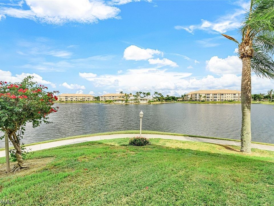 Beautiful 1st floor 3 bed/2 bath "Bimini" directly overlooks the lake, fountain and Island Club. Lovely light and bright end unit features 2023 Coretec waterproof flooring throughout with high baseboards, new doors and is also freshly painted throughout. Newly remodeled kitchen has 2023 soft close cabinets, drawers, faucets, quartz counters with tiled backsplash, 2023 microwave, refrigerator and dishwasher, newer stove and an added pantry. Master and guest baths feature 2023 new quite close vanities, quartz counters, new mirrors, decorative lights, comfort height toilets, new hardware, and a frameless shower door with tiled enclosure in master, and a barn glass shower door with tiled enclosure in guest. Separate laundry room has 2013 washer and dryer and features extra cabinets. Condo also has a 2022 A/C Trane 14 seer condenser with line set, 2023 hot water heater, and a 2021 newer roof. Spacious lanai has electric shutters and has an eastern exposure featuring spectacular sunrises. Condo is professionally staged with furniture and furnishings and is negotiable to purchase. Pay as you play golf. Lexington Country Club is a 24-hour gated and patrolled community which features many amenities and is located within minutes of the beaches, shopping and medical facilities.