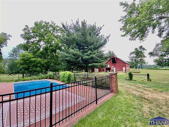 Beautifully updated farmhouse on 7 1/2 acres with pasture and farmland views for miles! Picturesque 40 X 32 red barn built in 1900 w/stalls, 40 X 30 pole barn addition in 1992, 32 X 20 shop & 28 X 16 inground saltwater pool! Gorgeous custom woodwork, h.wood floors and built-ins throughout. Roof is 5 years old, new well in 2021, septic in 2007, HVAC in 2017. You are going to love the newer kitchen with amish built cherry cabinets, skylights, breakfast bar, SS appliances, quartz C.tops, ceramic b.splash & built-ins. Newer bath with tile walk-in shower. Primary has two walk-in closets! Living and dining rooms both have fireplaces. Sunroom overlooks the huge stamped concrete patio. This home is lovingly cared for inside and out!