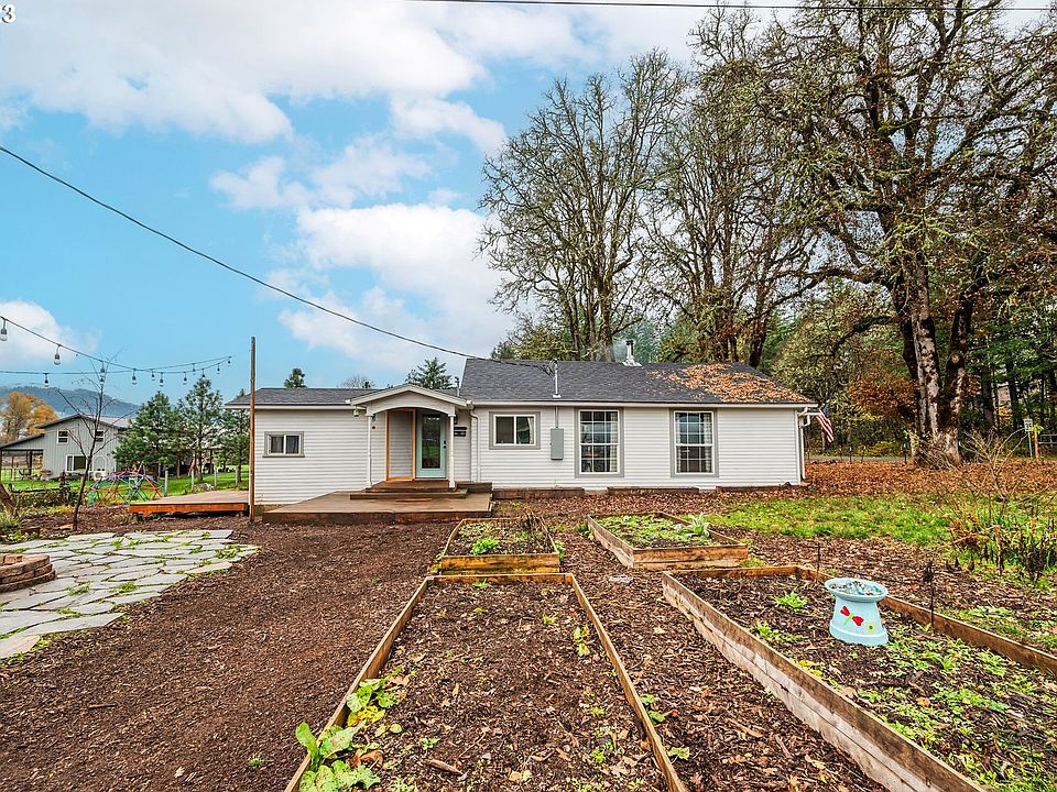 Welcome to 91509 Donna Rd, your idyllic farmhouse retreat in Springfield! Nestled in the serene Mohawk community, this 2-bed, 1-bath haven sits on over an acre of inviting, flat land.Step into the heart of this property where a charming 50 x 70 fenced garden invites you to unleash your green thumb. The property also boasts a versatile 25 x 50 shop with new lighting, perfect for DIY projects and hobbies. Enjoy lazy afternoons on the deck off the mudroom, soaking in the tranquility of your surroundings.Inside, discover a thoughtfully remodeled farmhouse where the kitchen takes center stage. Open-face shelving, a deep farmhouse sink, and butcher block counters create a cozy, yet modern atmosphere. New hickory hardwood floors and canned lighting throughout add a touch of warmth to every room.The primary bedroom is a tranquil retreat with barn doors, sconce and canned lighting, while the remodeled stove area beckons you to cozy up by the wood stove. Need a workspace? The built-in office space provides the perfect spot for creativity to flow.The bathroom has been tastefully updated with granite counters, LVP flooring, and new lights and fan. Natural light floods in through new windows in the primary bedroom and kitchen, accentuating the charm of this farmhouse.But the allure extends beyond the house itself. Picture a lifestyle of self-sufficiency with a chicken coop and an orchard boasting 11 new fruit trees - apple, peach, pear, plum, cherry - plus blueberries and dahlias.And practicalities haven't been overlooked ? the newer hot water heater, new plumbing and new electrical and electric box ensures efficiency in your daily living.Your Oregon dream home awaits at 91509 Donna Rd, where every detail has been thoughtfully considered to provide a perfect blend of comfort and countryside living. Don't miss the opportunity to make this farmhouse yours!