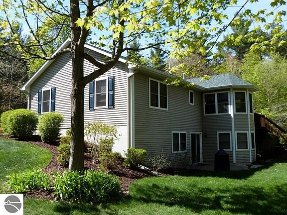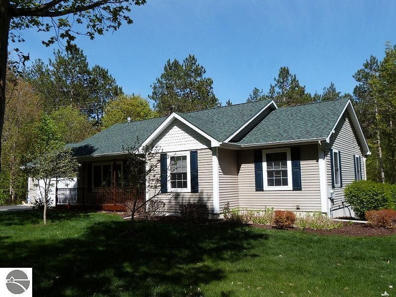 Immaculate walk-out Ranch (on beautiful 2.5 Acres) just N of wonderful Lake Ann Village, Mistwood Golf Course & Almira TWP park; located just 12 miles west of MUNSON & Traverse City. This 3 BR/2 Bath walk-out RANCH home will WOW you! Buyers will benefit from conscientious owners who keep this property in meticulous condition! Lovely fireplace in airy living space, island kitchen open to dining room & a wonderful sunny "turret" room (listed as family space) over looking the backyard. Private master suite, main flr laundry. Huge lower level walk out with slider to pretty patio & plenty of daylight windows. Lower level also includes a pellet stove (used minimally). Sprinkling system services a beautifully landscaped yard. Extra parking driveway for your RV or camping trailer. Sellers removed 32 trees for light & protection of home - Naturally pretty wooded back drop still awaits you! New Roof fall 2014. Many more extras!