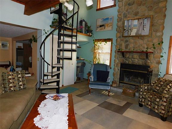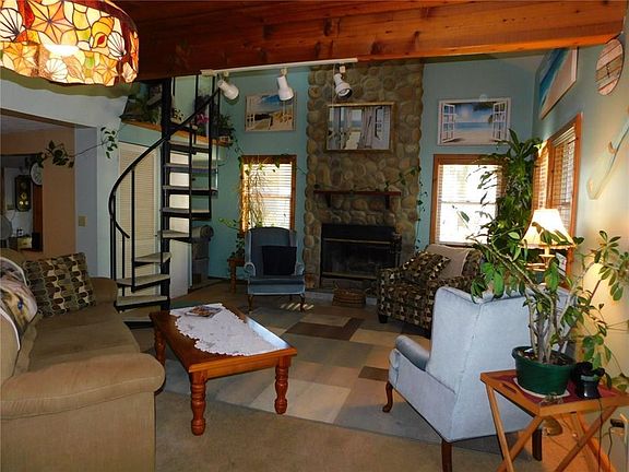 This amazing, three bedroom, two full bath, year-round home is situated on the channel/bay in Turkeyfoot, at Indian Lake. This home was built in 1950 but an amazing addition was added in 1996. Great Room has awesome cathedral ceilings, wood burning fireplace (with gas available should one choose to convert it), spiral staircase, and open to a great, eat-in kitchen. Loft is currently used as master bedroom, but other bedrooms are available on lower level. Fenced in yard. The home includes 65' of seawall (which is less than 5 years old), and a nice deeded boat dock. Also included is a detached garage with extra storage. Situated on a private drive. Must see.