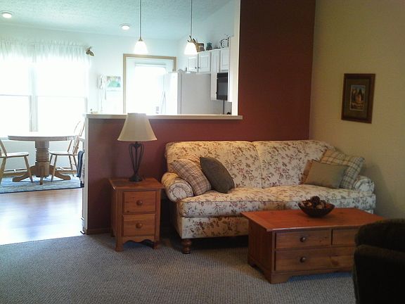 This immaculate condo's features include cathedral ceiling w/plant ledge, private master bath, walk-in closets in both bedrooms, updated flooring and lighting in kitchen, and a detached 2-car garage. Nothing to do but move in! This home qualifies for USDA financing ($0 down).