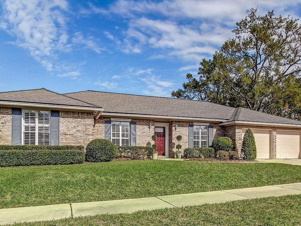 Brick, Pool + WOW factor! Fabulous 4 bedroom, 3 bath gushes pride of ownership. 1 Floor, 2520sqft w/Separate living & dining areas, family room boasts hardwood floors, stately brick frplc & French doors; screened patio overlooking the open pool area. The updated gourmet kitchen offers Kraftmaid cabinetry w/customized drawers, plus, a food prep island, 5 burner smooth cooktop, granite counters & tiled backsplash, too. Addt'lly: the cook will enjoy the extra pantry closet shelving in the utility room. The vast owner's retreat is equipped w/walkin closets, updated bath, stepless shower entry & patio access. Spacious bedrooms. Bedrm 4 suite features a stepless entry private shower; 11 total closets, crown molding, Plantation shutters, paver patio, firepit, sep. irrig. meter, Newer Roof + MORE