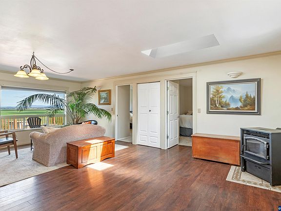 Look no further than this charming farmhouse style home w/stunning views & plenty of space for a workshop with 2 shops. Room for livestock, chicken coop on 4.75 acres. 3 brm, 2 bath home built in 1903 & 1970. Inside, you'll find a spacious & inviting living area, perfect for relaxing with family & friends. Kitchen is a cook's dream, with ample counter & storage space, as well as modern appliances & an island. Two dining areas both with views. Enjoy a warm evening by the pond or warm up next to the firepit.