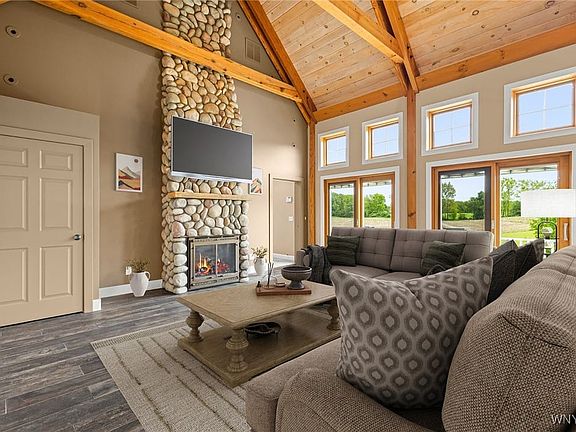 *One or more photo(s) was virtually staged.* Welcome to your One-of-a-Kind, Modern Homestead Dream! This custom-built 3-bedroom, 4.5-bath home sits on 72+ private acres just outside the City ofBataviaconvenient to Buffalo, Rochester, and surrounding communities. A rare blendof comfort, functionality, and acreage, this Genesee County property offers exceptionalvalue compared to neighboring Monroe and Erie Counties. Inside, enjoy a spaciousliving area with a dramatic two-story stone fireplace, timber beams, and a kitchen withsolid-surface counters and custom cabinetry that flows into the formal dining room andout to a large deck with panoramic views. The main-floor primary suite offers luxury andprivacy, while each additional bedroom features its own en-suite bath. A spiral staircaseleads to a loft ideal for a home office or reading nook. The walkout lower level opens toa covered patio and fenced 1-acre backyard. Above the heated 3-car garage andworkshop, a finished flex space with a full bath offers endless potential in-law or guestsuite, home gym, business, extra storage, or short/long-term rental. The finished atticand insulated workshop are perfect for woodworkers, hobbyists, mechanics, orsurvivalists, or to develop as an accessory unit to add an additional bedroom. Outdoors,enjoy professionally landscaped grounds with a charming bridge to the front porch, astocked pond, private shooting range, 12 tillable acres, and 55+ wooded acres withtrailsa true outdoorsmans paradise. Features include whole-house solar, backupgenerator, pet wash station, public water, and natural gas. County tax records report2,660 SF; current appraisal indicates 4,400 SFoffering significantly more home for theprice. A unique opportunity for those who desire a truly exceptional property and valueprivacy, space, versatility, and convenience. 2025-10-20