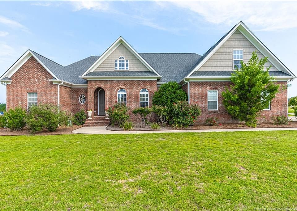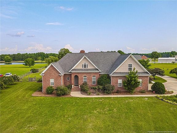 This executive custom brick home is located in the Bay Trace community in Linden, on 2 acre lot featuring water views. Entering this open concept floor plan, notice the formal dining room, living room w/vaulted ceilings & wood burning fireplace. The kitchen is open to the living room & features an island w/breakfast bar, granite countertops, gas cooktop, & SS appliances. The master bedroom has vaulted ceilings & access to the rear porch. The ensuite bathroom has double vanities, a tile walk-in shower, garden tub, & a walk in closet. 2 bedrooms and 1.5 bathrooms are also on the main level. Upstairs there is a bedroom, full bath, bonus room, & walk-in attic storage. Enjoy the view of the fenced backyard on the lg screened back porch, complete w/wood burning fireplace. Beside the porch there is also a hot tub! In addition the the attached two car garage, you will also notice the detached 3 car garage. This beautiful home with lots of room inside and out is ready for your viewing!
