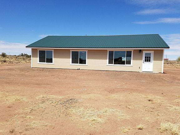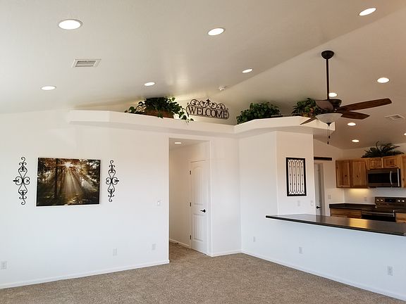 FEATURES ON THIS ALL NEW CUSTOM HOME 10 ACRE HORSE PROPERTY Quality & Energy Efficient Construction EXTERIOR • 2 x 6 exterior walls • Driveway approach/patio & cement porches • Double pain vinyl windows by Betterbilt • Siding - 1/2x16x16’ double 8” siding • Behr premium exterior paint • Metal Roof/Fern Green (07) • R-30 attic insulation • R-19 exterior insulation • Raised panel/windows on garage door with insulation • Garage door opener with two remotes and exterior touch pad entry • Front and side frost free hose faucets • Fenced on all sides of 10 acre parcel • 250 gallon propane tank (rental) - • Exterior motion lights on three sides • Well (new) 292’ deep, 1.5 H.P. well pump, & pressure tank • Septic tank and leech field INTERIOR • OPEN FLOOR PLAN: Vaulted ceilings in living & kitchen areas with pot shelving • Hand-applied texture walls with rounded “bull nose” drywall corners • Behr interior paint • Wall to wall carpet in living, hall, bedrooms and closets • Porcelain tile flooring in entry, dining, kitchen, bathrooms & laundry rm • Recessed lighting in entry, living room, dining room, kitchen, hall, laundry room, bathroom, garage areas • Dining room hanging fixture & sconce wall light fixtures in master • Four ceiling fans provided (living room, master bedroom, and two bedrooms) • Mirrored by-pass closet doors in two bedrooms • Finished garage (24’ x 26’) and equipment room, with hand applied texture walls & shiplap. • Garage is ready for conversion to large family game room, mother-in-law /guest quarters, or • “Man cave” for dad. • Wood stove in garage or family room conversion area • Hickory cabinets in kitchen, laundry, master bedroom vanity, and bathrooms • Barn door feature in kitchen • Laminate countertops • All Samsung Stainless Steel Kitchen appliances • Bronze faucets in kitchen, laundry & bathrooms, bronze door hardware • Prewired for TV and internet • Central Heating and Cooling with propane 95 % efficient Armstrong 75 kbtu unit. Please call for directions as GPS is taking people into a totally different area. Call Yolanda at 928-243-8550 or Steve at 927-243-5025 for more information.
