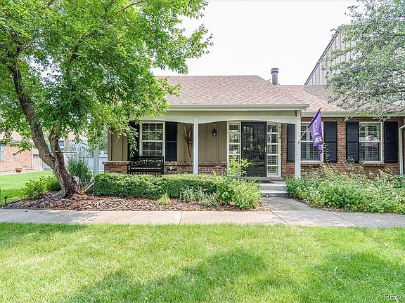 Rare ranch end-unit - First time offer - Surrounded by greenbelt, private, quiet dead-end street. Ideal location near the Cherry Creek Trail and the Highline Canal Trail. Front porch and back patio garden provide a gathering area for wonderful neighbors, cups of coffee, or steaks. 2 car garage, traditional interior, plantation shutters and crown molding. Hardwood Floors/Carpet. Full-finished basement, ideal floor plan. INCLUSIONS: Dining room chandelier, Kitchen chandelier, 2 refrigerators, 1 freezer. Small kitchen island (on wheels) not included. New electrical box and furnace and sewer serviced in September 2021. Move in today! This unit has it all. Well-run HOA - $246/month dues Cherry Creek Meadows is off the beaten path - secluded, quiet, entered only by one street.