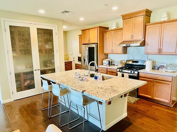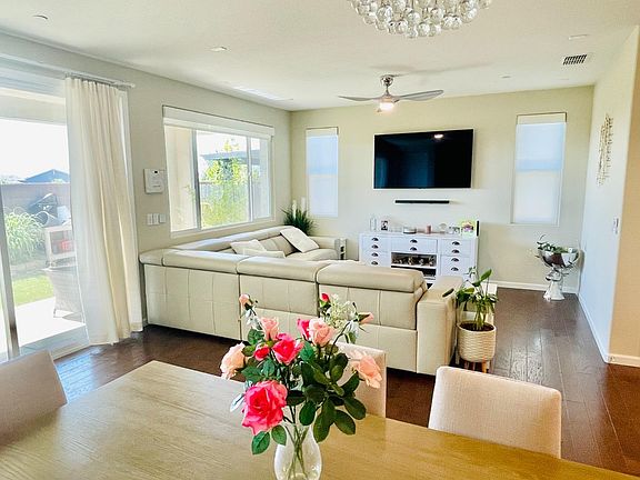 Beautiful Single Family Home 3 Bedrooms ~ 2 Baths. Bright and Open Floor Plan. Ready-to-Move in Condition with over $60K Fully Upgrades throughout Home and Outside. Upgraded Kitchen with slab Quartz Countertop, Maple Cabinets, Large Pantry Closet. Hardwood Floors. Bathrooms Tile, Bedrooms Carpet, Fans, Living Room ~ Kitchen Blind Automation, Chandelier Light in Dining Room and Master Bedroom, Solar and Security Camera Systems owned. Landscaped with low maintenance. Close to Park, Schools and Shops.