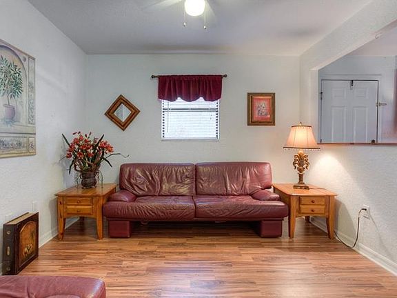 MUST SEE THIS GREAT DEAL! Adorable 2 Bedroom 1 Bath 1 car garage block home. The house features an open floor plan, newer laminate flooring, an updated kitchen, newer appliances, an updated bathroom, heating and a/c in the garage making it a perfect 3rd bedroom, a tiled screened lanai, huge backyard and 2 large storage sheds with electricity. Located in a quiet neighborhood, close to Publix, shopping and restaurants.