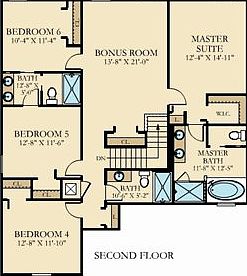 This spacious two-story home features six bedrooms, six bathrooms and a large combination dining and family room that overlooks the covered patio. There are two master suites, a fully-equipped kitchen, a two-car garage, and an upstairs bonus room.
