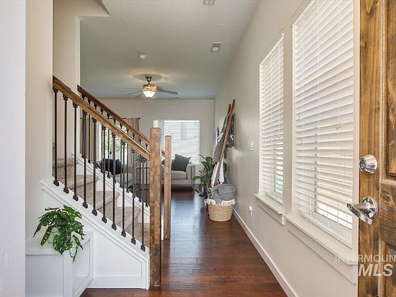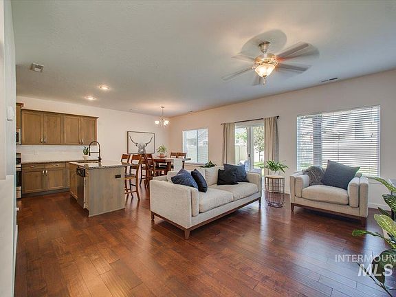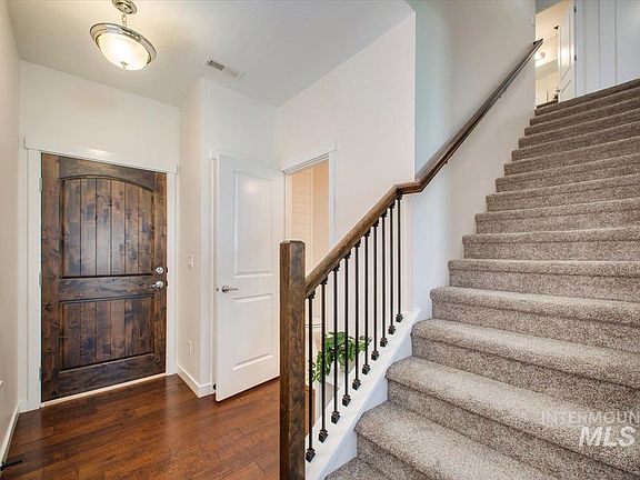 This stunning, low maintenance residence offers a perfect blend of style, comfort & convenience. Beautiful upgrades throughout, featuring granite countertops, sprawling engineered hardwood flooring adding warmth & sophistication to an open concept living, dining & kitchen. Surrounded by an abundance of cabinetry you'll enjoy cooking on your gas range, along with the sleek & modern aesthetic of the stainless-steel appliance package. Comfort is paramount in this home, w/ dual zone heating/cooling, generous sized bedrooms, walk-in closet & upstairs laundry room. Enjoy the ease of living in Southcreek- take a refreshing dip in the community pool, perfect for an afternoon retreat on those hot summer days! Conveniently located minutes away from Costco, freeway access & downtown Boise. This gorgeous home offers the best of both worlds—aesthetically pleasing upgrades & a convenient location. Don't miss the low maintenance lifestyle w/ HOA amenities: front/backyard mowing, fall irrigation blow out & spring startup!