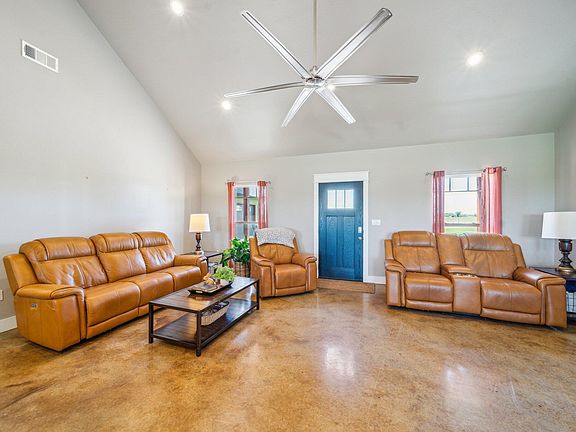 Built as the personal home of a professional builder, this thoughtfully crafted home offers quality construction and custom touches throughout. Nestled on 2.5 acres, the home combines craftsmanship with modern comforts. Inside, you'll find stained concrete floors that are both stylish and durable, granite countertops throughout, and a kitchen that truly shines with its gorgeous finishes- perfect for entertaining or everyday living. The spacious primary suite includes an ensuite bathroom with an oversized tile shower and a private door that opens directly to the back patio oasis. The home features a dedicated office space, a large upstairs open room and can lighting in all bedrooms. Energy efficiency is top of mind with spray foam insulation in place. Large garage, minutes to the turnpike!