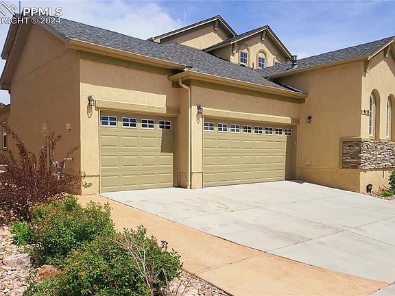 Embark on an extraordinary journey within this captivating 5-bedroom, 3.5-bathroom residence, a true masterpiece nestled in the highly sought-after Wolf Ranch community in the heart of Colorado Springs. This home seamlessly marries stunning design with contemporary elegance, featuring a spacious open floor plan adorned with soaring ceilings, main level 8 ft. doors, and exquisite hardwood flooring that graces the great room and the kitchen. The ambient glow of a gas fireplace adds an inviting touch, creating a warm and welcoming atmosphere. Explore the main floor to discover an elegant primary suite boasting dual vanities in the bathroom. Ascend the staircase to the upper level, where a bedroom and loft open to an enclosed deck adorned with stucco and concrete floor finishes, providing a unique and captivating perspective of the great room below. Descend to the lower level and immerse yourself in the huge open area, meticulously designed as a magnificent entertainment room. The lower level reveals a generous entertaining room with 9 ft. ceilings, two additional bedrooms, and a complete wet bar featuring plenty of cabinets, including a sink and dishwasher. The meticulously xeriscaped front and back lawns set the stage for a backyard oasis, showcasing a fire pit and an extended patio, perfect for hosting gatherings and creating lasting memories. Additional highlights include custom metal window well covers and a decorative wrought iron front security door. With its distinctive design and placement within one of the top school districts, this home offers easy access to the Power Corridor, shopping centers, and parks, providing unparalleled convenience and striking a perfect balance between tranquility and accessibility. Serving as a gateway to a lifestyle that seamlessly combines elegance with the practicality of a well-connected community, this residence promises a harmonious living experience in every aspect.